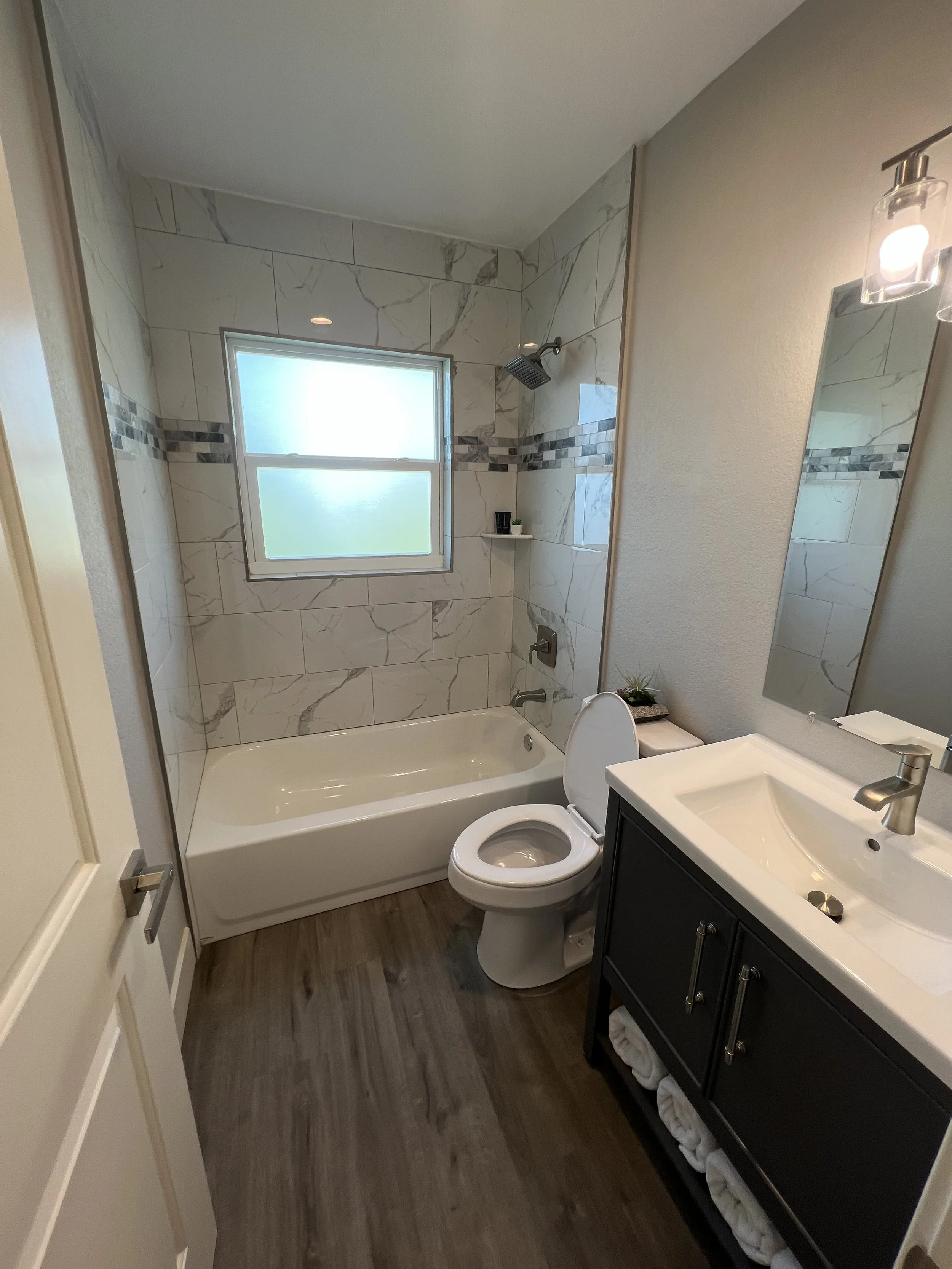 We preserved the original footprint and delivered a full-home refresh with a bright, coastal feel. The only layout change was relocating the HVAC and water heater to bring the laundry indoors, adding everyday convenience without sacrificing space. We also applied new stucco around the entire exterior for a crisp, uniform finish. Inside and out, every surface was updated for a clean, modern look.